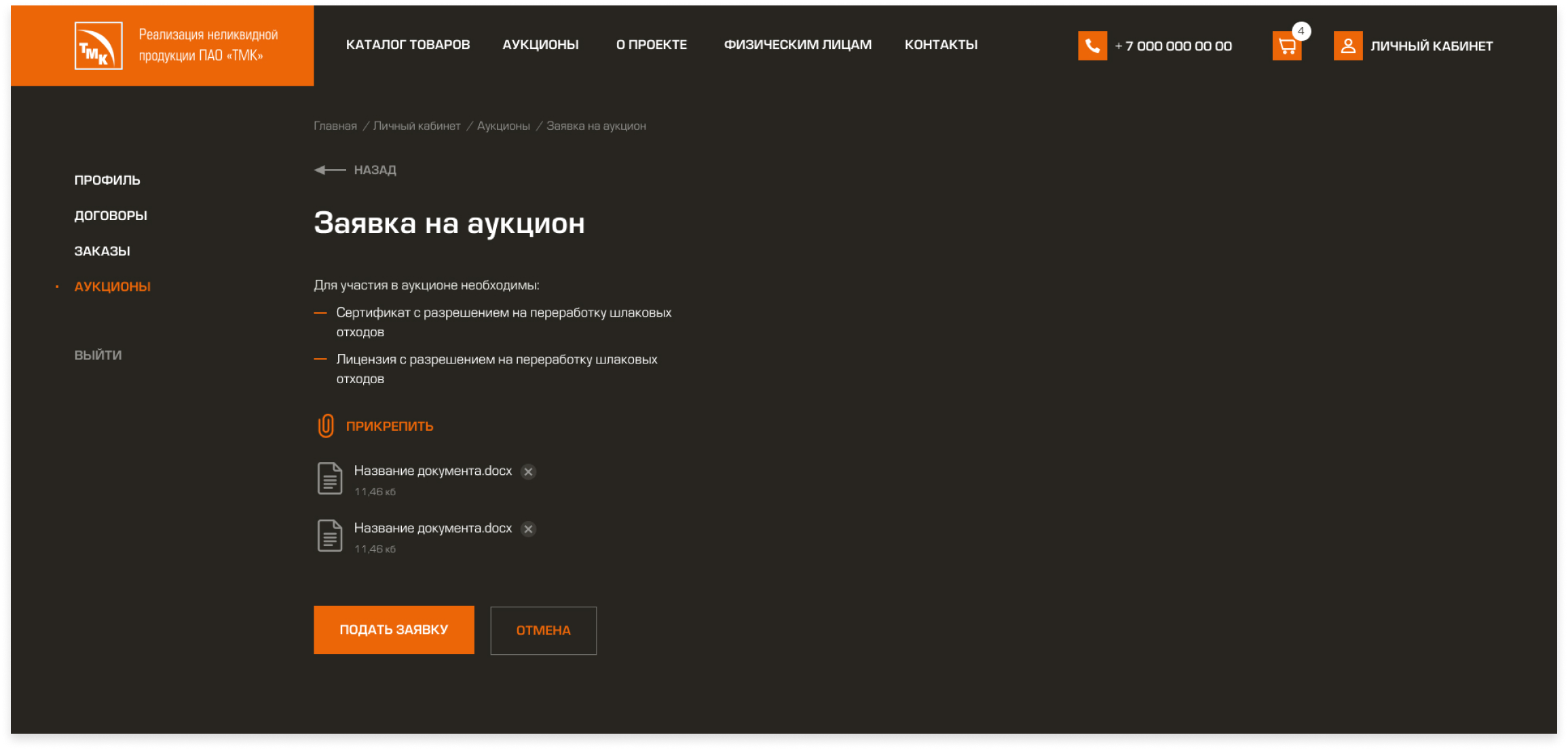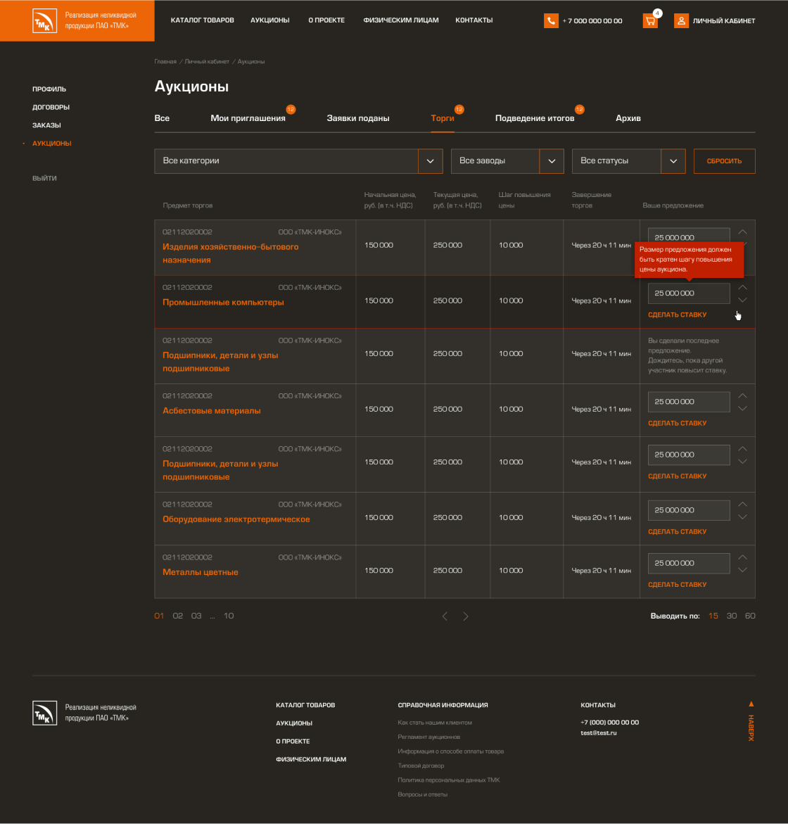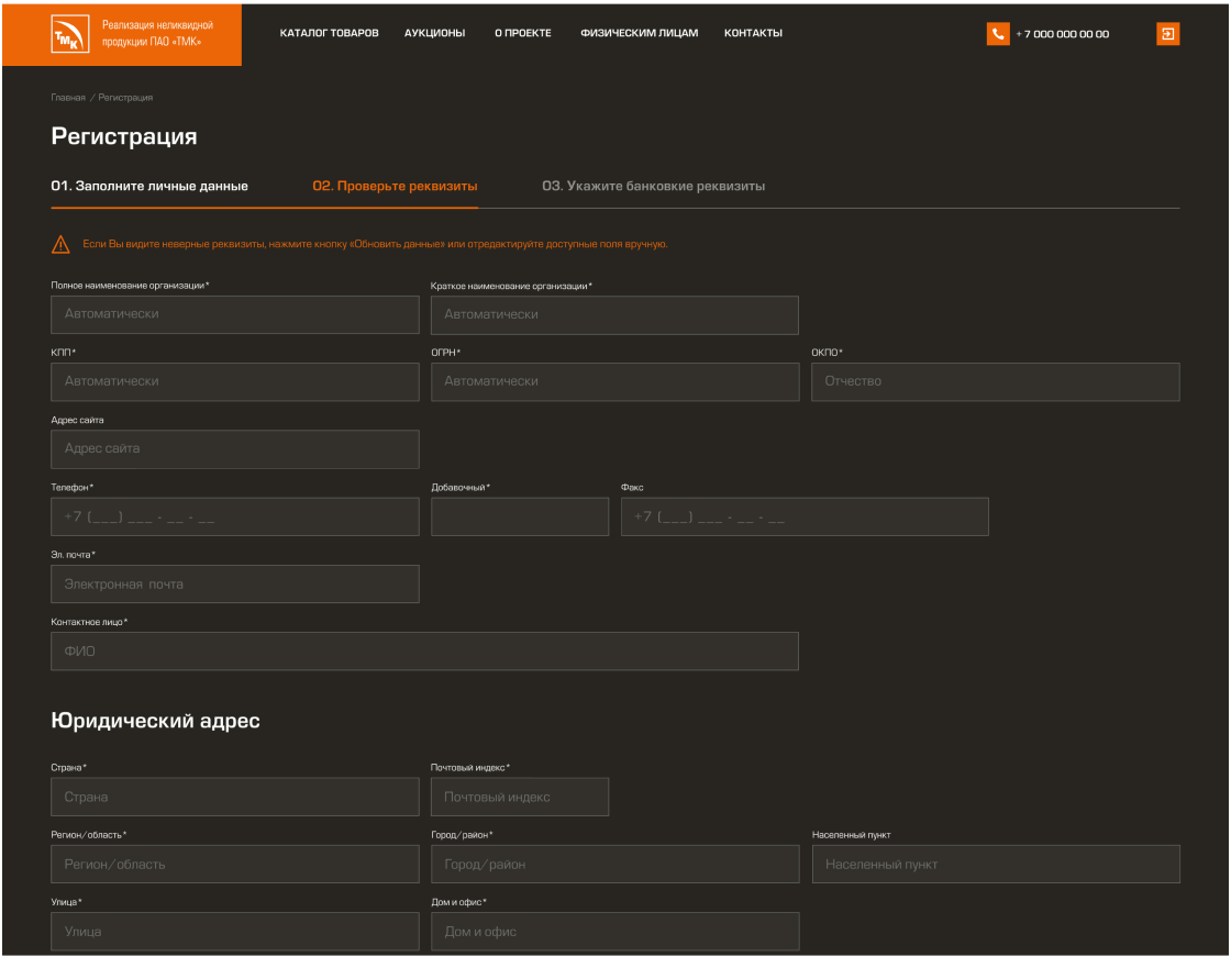 Создание портала/маркетплейса для продажи неликвидной и непрофильной продукции ПАО «ТМК» и проведения процедур электронных торгов.