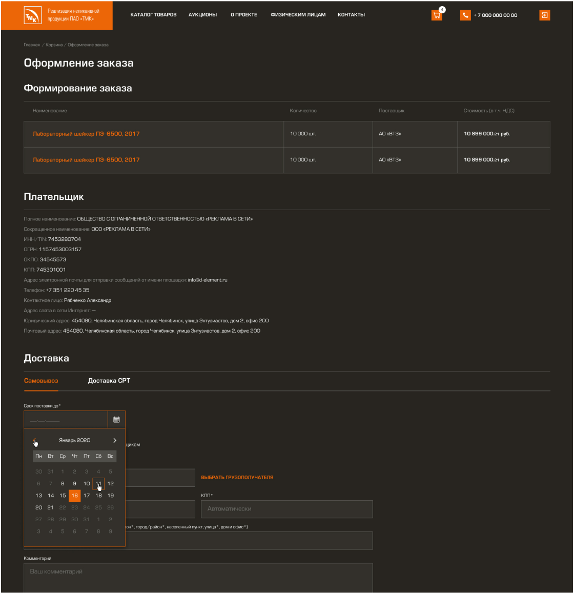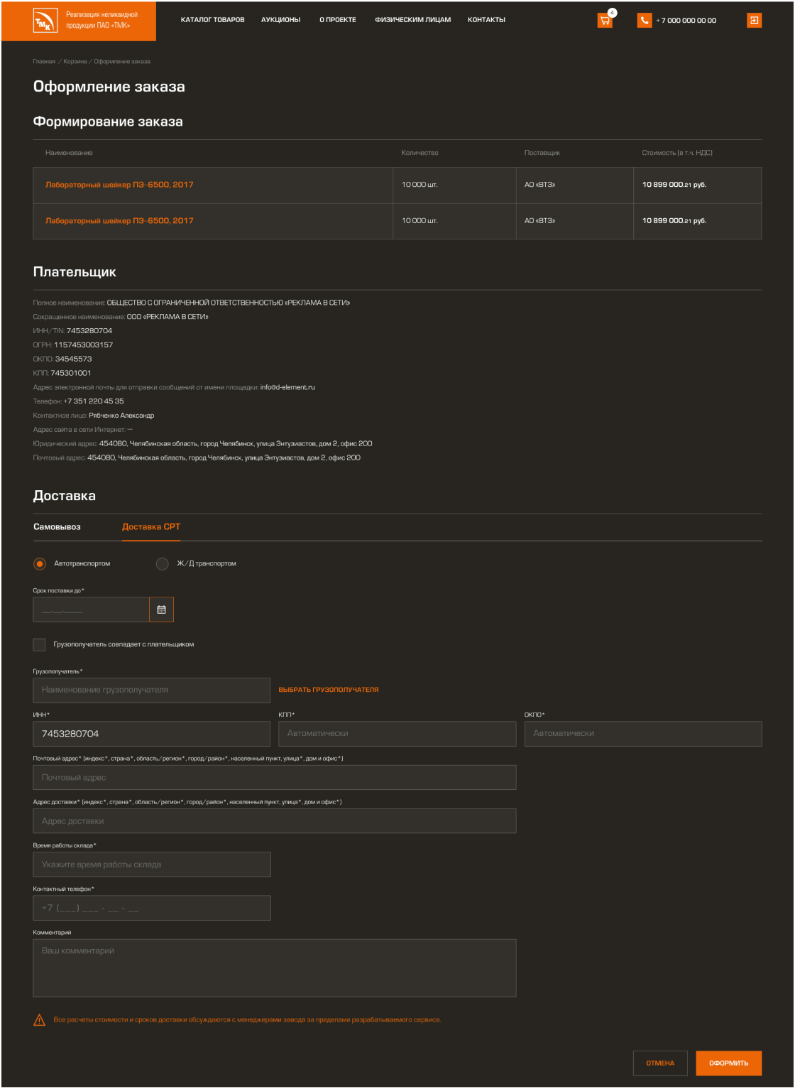 • Создание системы оформления заказов индивидуально для каждого предприятия группы ПАО «ТМК»